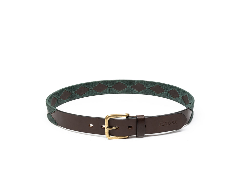 The Libertad green & brown leather polo belt with a golden buckle flawlessly encompasses the exceptional qualities that define Estosa handcrafted belts. With its stunning designs, unparalleled craftsmanship, and the use of the finest materials, this belt is meticulously crafted to elevate your attire and make a resounding statement of refinement.