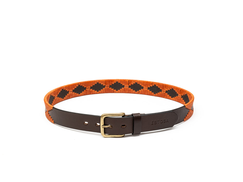 The Libertad orange & brown leather polo belt with a golden buckle flawlessly encompasses the exceptional qualities that define Estosa handcrafted belts. With its stunning designs, unparalleled craftsmanship, and the use of the finest materials, this belt is meticulously crafted to elevate your attire and make a resounding statement of refinement.